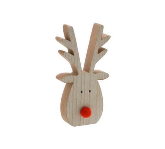 20cm wooden reindeer head with red pom pom nose decoration