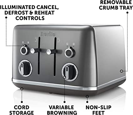 The variable width slots accommodate different bread sizes, crumpets and bagels, while the variable browning controls ensure every slice is just the way you like it. A removable crumb tray and cord storage helps keep your worktop clean and tidy.