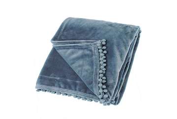 A super soft flannel fleece throw in blush pink with a pretty pom-pom braid edge at the shortest ends. Perfect as an accent piece at the end of a bed or to snuggle up with on the sofa. Size: 130x170cm