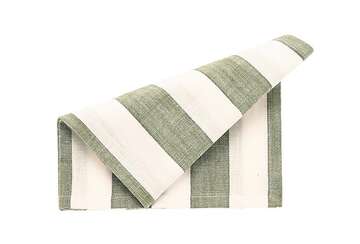 Napkin woven in 100% cotton, a wide stripe in olive. Set of 4 tied with jute tape. Size: 46x46cm